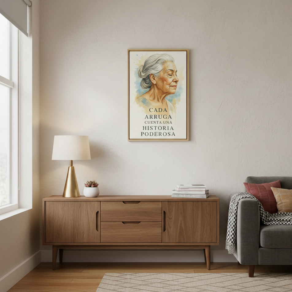 Este hermoso retrato en lienzo celebra la gracia, el amor y la belleza del paso del tiempo. Con el mensaje “Cada arruga cuenta una hermosa historia”, rinde homenaje a las madres, abuelas y mujeres que inspiran con su fortaleza y ternura. Impreso en lienzo de calidad de museo y listo para colgar, es un regalo perfecto para el Día de la Madre, cumpleaños o aniversarios — una pieza eterna de amor y legado.